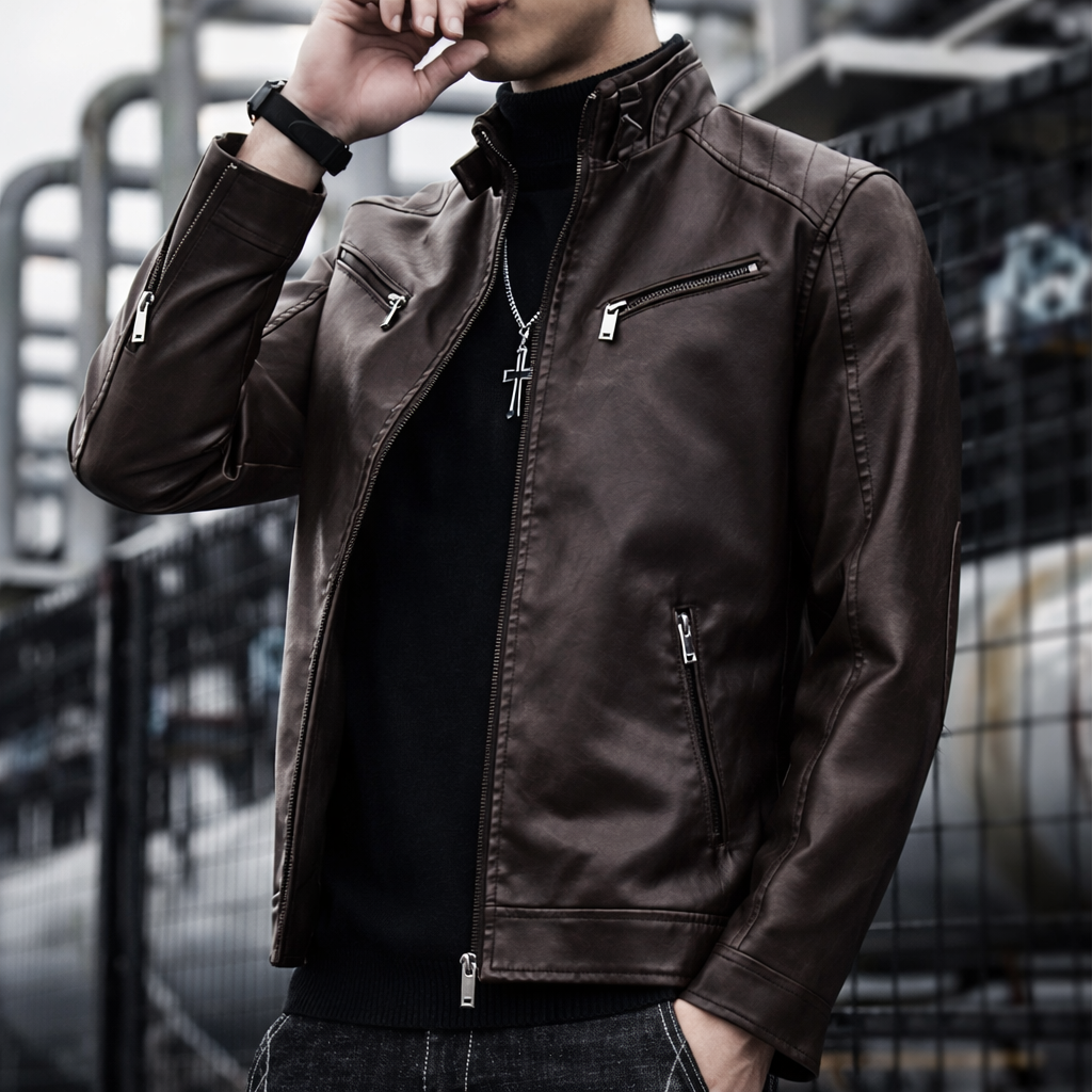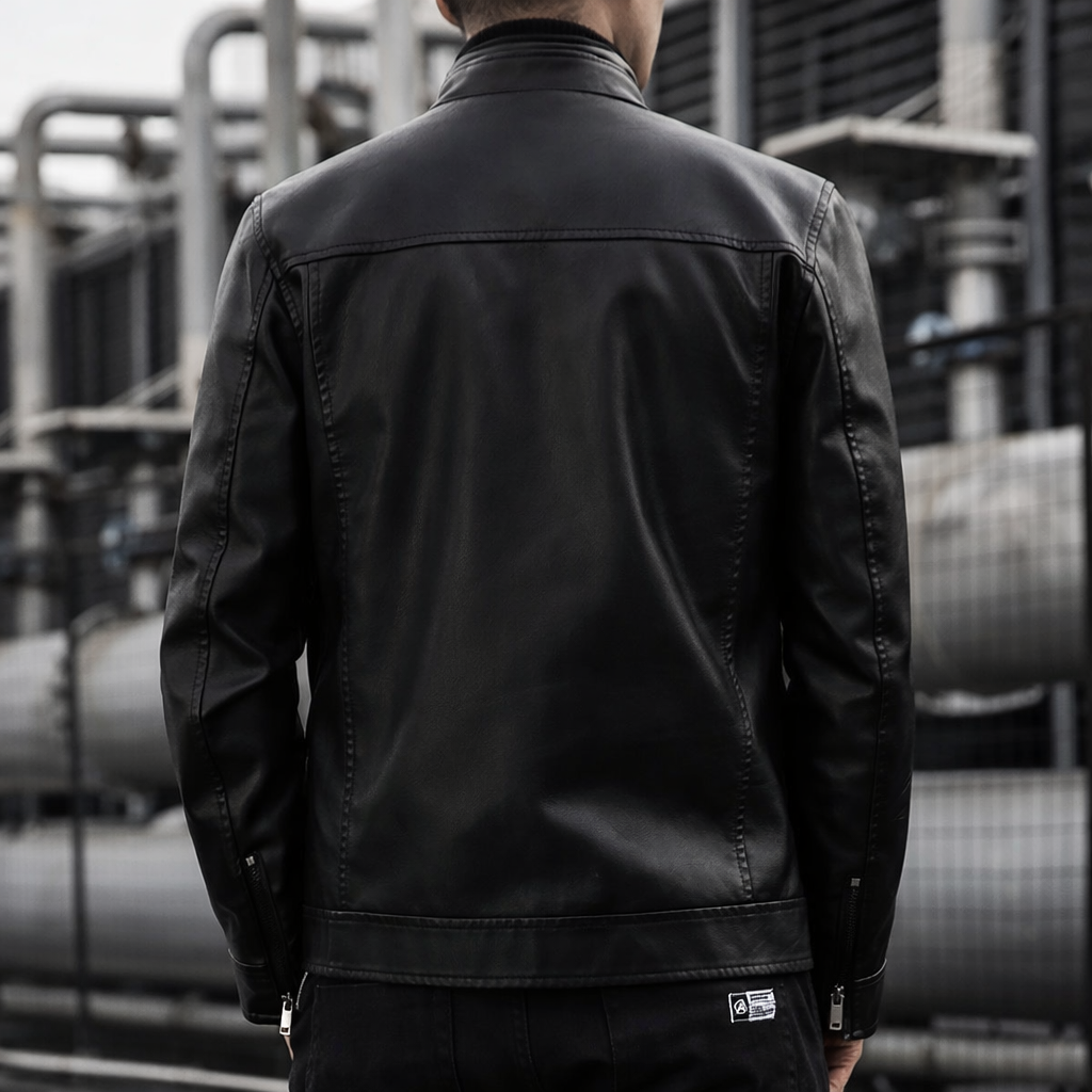 A streamlined faux leather jacket crafted for a sharp, confident silhouette that moves effortlessly from day to night. Clean lines, subtle hardware, and a refined finish make it a versatile essential for modern dressing.