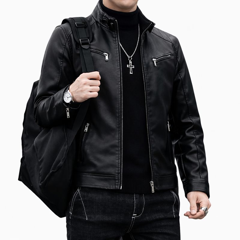 • Stand collar and zip-front closure for a sharp, modern silhouette